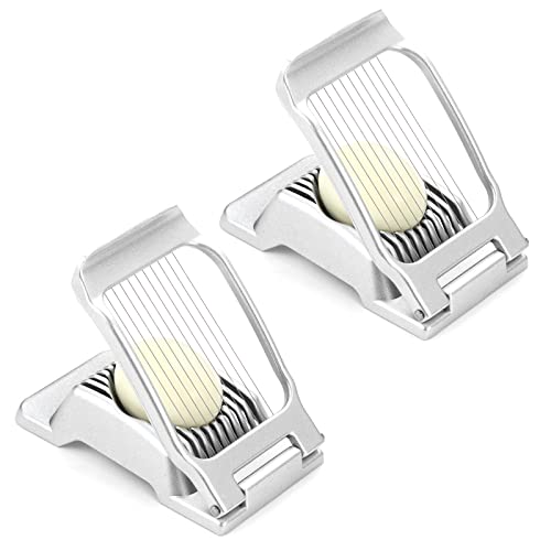 This is the KABUDA Stainless Steel Egg Slicer. This is a 2 pack egg slicer that is made out of stainless steel and has a heavy duty aluminum base metal egg cutter. This is a dishwasher safe product that is silver in color. The KABUDA Stainless Steel Egg Slicer is a great way to make hard boiled eggs, strawberry soft fruit, and other food items. KABUDA stainless steel egg slicer is a safe and durable option for home chefs and professionals. Base of the slicer is made of aluminum alloy, which makes it strong and durable. Additionally, the nonslip design ensures that the slicer will not move or slide during meal preparation. KABUDA Stainless Steel Egg Slicer is a great choice for anyone who wants to make delicious, smooth eggs. Slicer is stable and doesn’t slide while in use, making it a great choice for busy chefs or anyone who wants to make quick and easy meals. Slicer is also easy to clean, so you can enjoy your delicious eggs in peace. KABUDA stainless steel egg slicer is a top quality foodgrade 304 stainless steel wire slicer. It is made with anti-rust technologies to ensure that your food will not rust or deform after longterm use. KABUDA stainless steel wire slicer is also easy to use and has a comfortable grip.