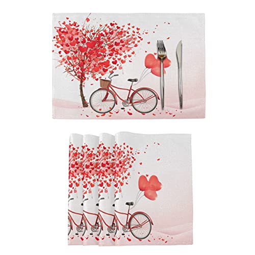 ASPMIZ Valentine’s Day Placemats Set of 4, Red Truck Car Placemats, Heart Balloon Heat-Resistant Table Mats for Valentines Wedding Dining Table Decoration, 12 x 18 Inch